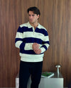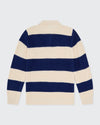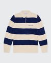 The Lando Knit combines timeless rugby-inspired stripes with a modern edge, making it an essential layer for cooler days. Knitted in heavyweight yarn for warmth and structure, the navy and cream colourway brings a refined yet laid-back aesthetic to your wardrobe.