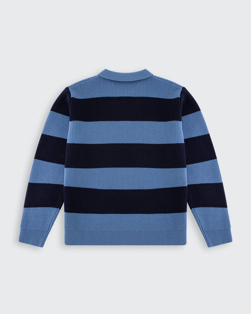Classic stripes. Everyday swagger. The Steel & Navy Lando Knit brings vintage sport vibes with a modern twist. Crafted from soft, breathable cotton and finished with bold navy and light blue stripes, it’s the kind of shirt that turns heads without trying too hard.